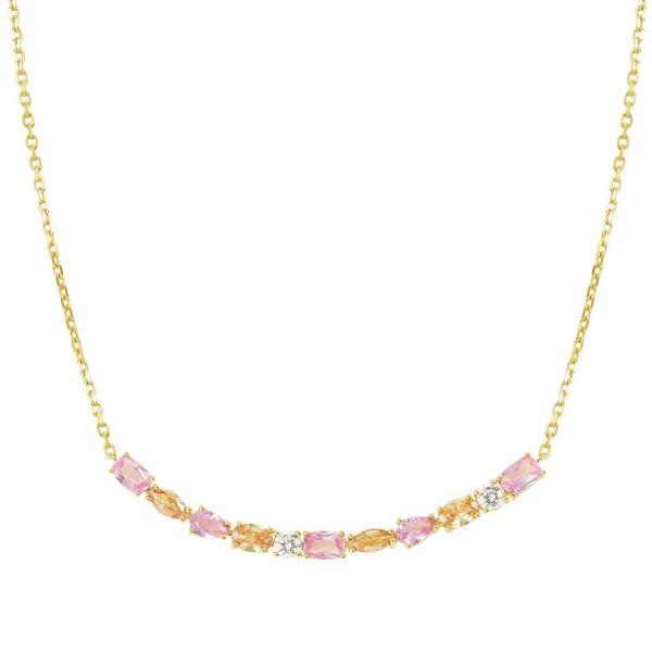 Collana della collezione Colour Wave in argento 925 dorato in sottile maglia forzatina con al centro elemento rigido composto da cubic zirconia colorati sui toni del rosa con forme diverse. Possibilità di regolare la misura grazie agli anellini finali. Chiusura a moschettone. Packaging dedicato, prodotto in Italia.