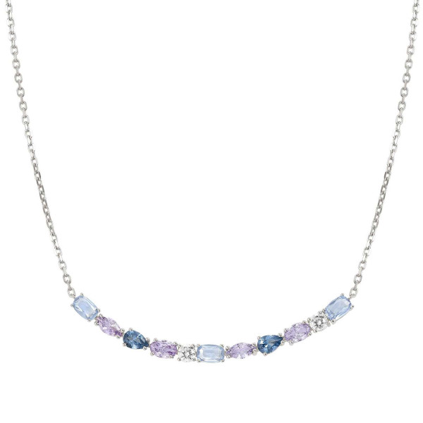 Collana della collezione Colour Wave in argento 925 lucido in sottile maglia forzatina con al centro elemento rigido composto da cubic zirconia colorati sui toni del blu con forme diverse. Possibilità di regolare la misura grazie agli anellini finali. Chiusura a moschettone. Packaging dedicato, prodotto in Italia.