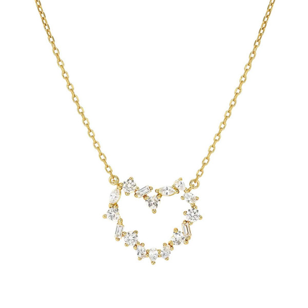 Collana della collezione Colour Wave mini in argento 925 dorato in sottile maglia rolò con cuore centrale di misure 1,7 x 1,7 cm composto da cubic zirconia trasparenti di diversi tagli. Misura regolabile a piacimento grazie alla chiusura con moschettone scorrevole. Packaging dedicato, prodotto in Italia.