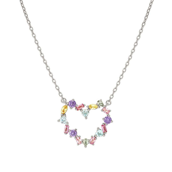 Collana della collezione Colour Wave mini in argento 925 lucido in sottile maglia rolò con cuore centrale di misure 1,7 x 1,7 cm  composto da cubic zirconia multicolor di diversi tagli. Misura regolabile a piacimento grazie alla chiusura con moschettone scorrevole. Packaging dedicato, prodotto in Italia.