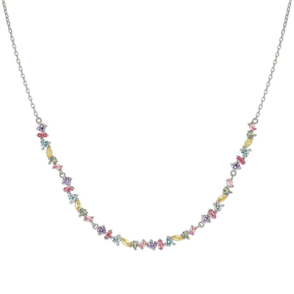 Girocollo semirigido della collezione Colour Wave mini in argento 925 lucido in sottile maglia rolò con 5 elementi semirigidi composto da cubic zirconia colorati di diversi tagli. Misura regolabile a piacimento grazie alla chiusura con moschettone scorrevole. Packaging dedicato, prodotto in Italia.