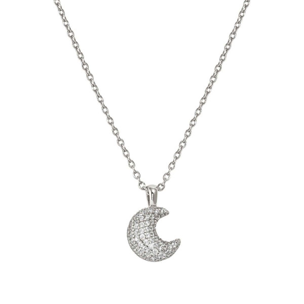 Collana della linea Lifepoetry in argento 925 lucido in sottile maglia rolò con al centro bel pendente a forma di luna bombata di circa 1 cm con pavè di cubic zirconia bianchi. Chiusura regolabile a piacimento grazie al moschettone scorrevole. Prodotto in Italia, packaging dedicato.