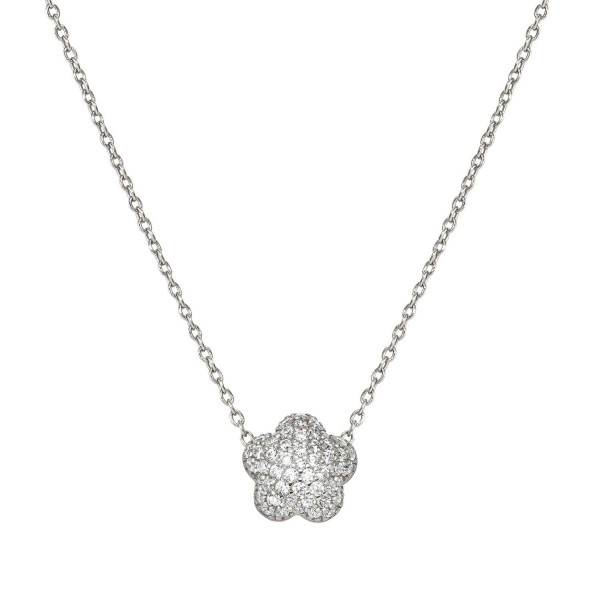 Collana della linea Lifepoetry in argento 925 lucido in sottile maglia rolò con al centro fiorellino bombato di circa 1 cm con pavè di cubic zirconia bianchi. Chiusura regolabile a piacimento grazie al moschettone scorrevole. Prodotto in Italia, packaging dedicato.