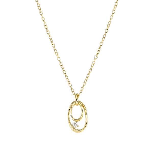 Collana della linea My Rebel Art in argento 925 dorato in maglia rolò con al centro pendente dalla forma ovale irregolare di circa 1,4 x 2,3 cm con incassato cubic zirconia bianco. Possibilità di regolare la misura a piacimento grazie agli anellini finali. Prodotto in Italia, packaging dedicato.