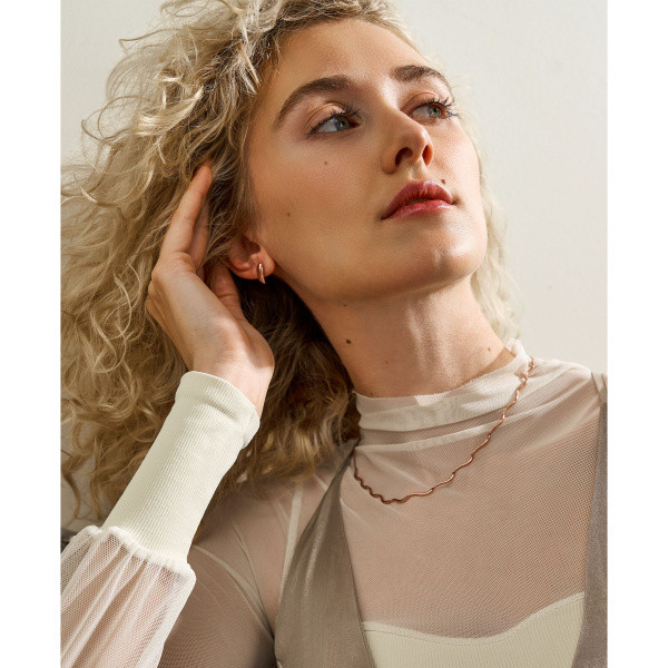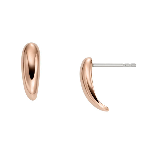 Orecchini della linea Anja in acciaio anallergico rosato con finitura lucida a forma di goccia. Chiusura a farfallina.