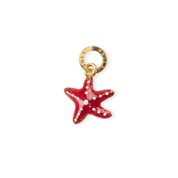 Ciondolo Isola Bella realizzato a mano in Sicilia in argento 925 dorato a forma di stella marina di circa 1cm con smalti colorato. Possibilità di essere inserito su collana o bracciale. Packaging dedicato.