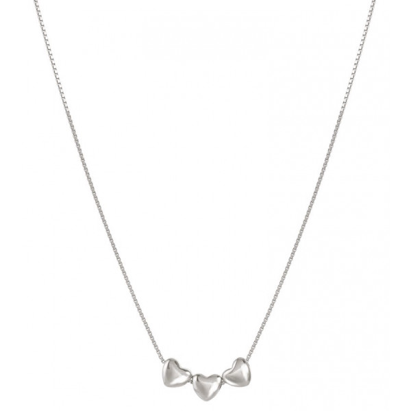 Collana della linea Armonica in argento 925 in sottile maglia veneziana con al centro 3 cuoricini bombati di 5 mm. Chiusura con moschettone, misura regolabile grazie agli anellini terminali. Prodotto in Italia, packaging dedicato