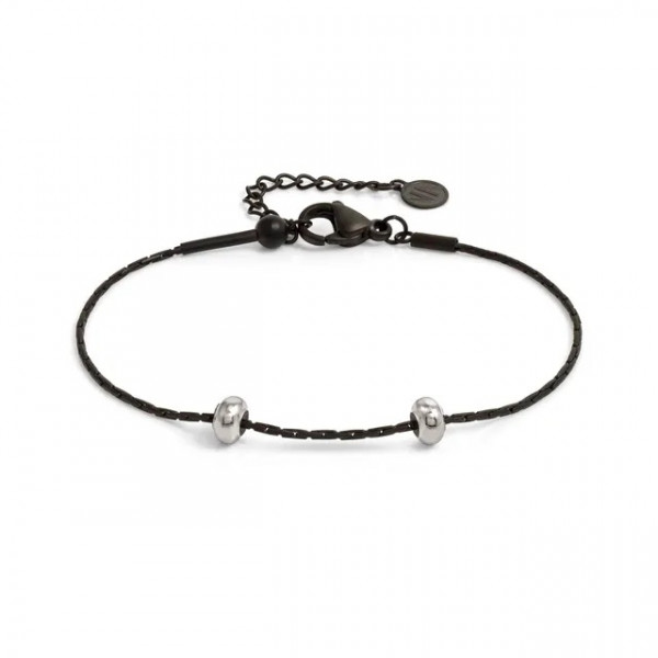Bracciale base della collezione Seimia in acciaio anallergico con trattamento PVD nero in maglia semirigida con chiusura a moschettone e misura regolabile. Libera la tua creatività inserendo facilmente lettere e simboli della stessa linea. Include 2 stopper in argento. Prodotto in Italia, garanzia ufficiale e packaging dedicato.