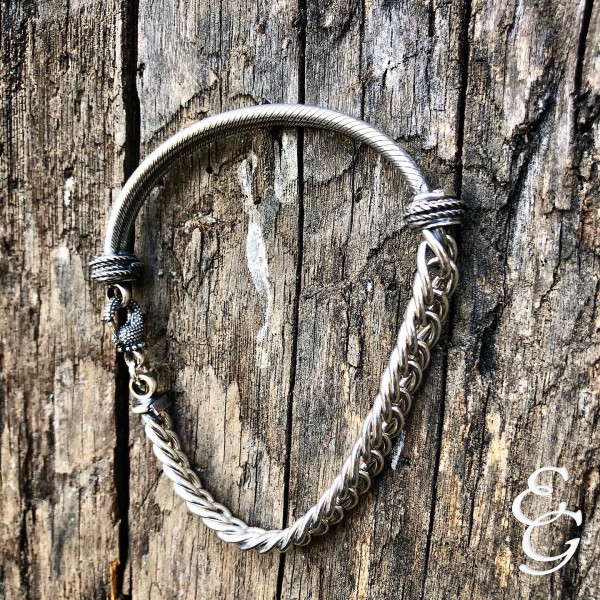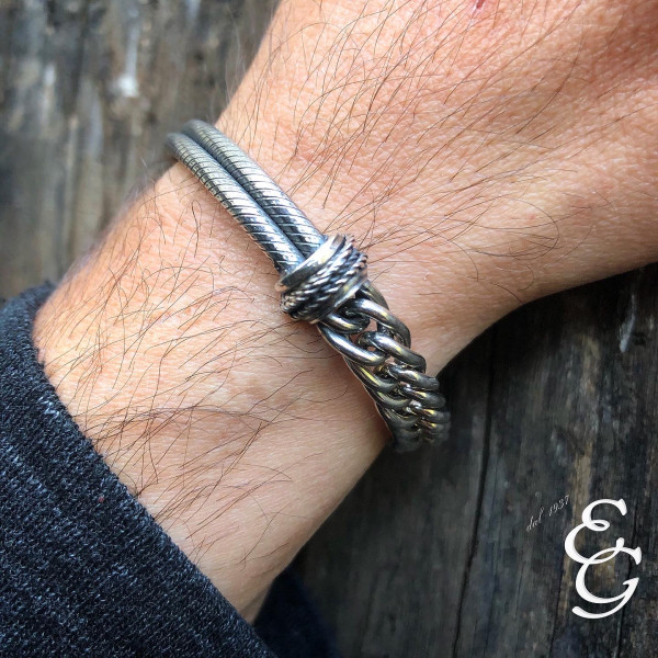 bracciale unisex in argento 925 invecchiato reversibile da un lato snake rigido, dall’ altro groumette.
