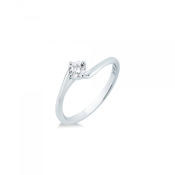 Anello Mirco Visconti con sottile montatura stile Valentine in oro bianco 750 o/oo con diamante taglio brillante di ct 0,23 incassato con 4 griffes nella parte superiore. Prodotto in Italia, garanzia ufficiale e packaging dedicato