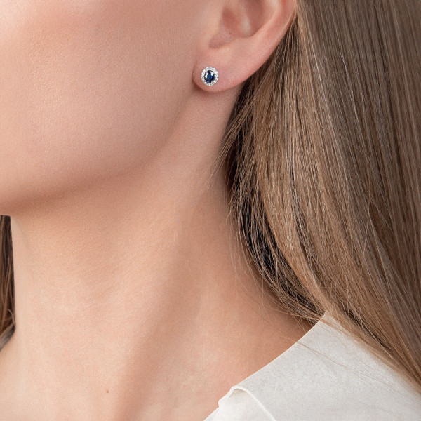 Mirco visconti orecchini con zaffiro blu ovale e contorno di brillanti