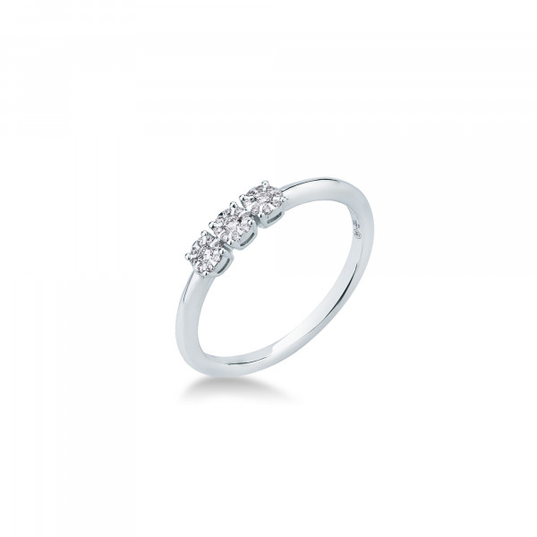 Anello Mirco visconti modello trilogy con sottile montatura in oro bianco 750 con diamanti taglio brillanti di ct 0,12 complessivi incassati con tecnica Magic. Prodotto made in Italy, packaging dedicato con garanzia e certificato di sostituzione