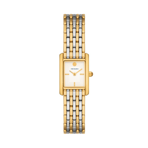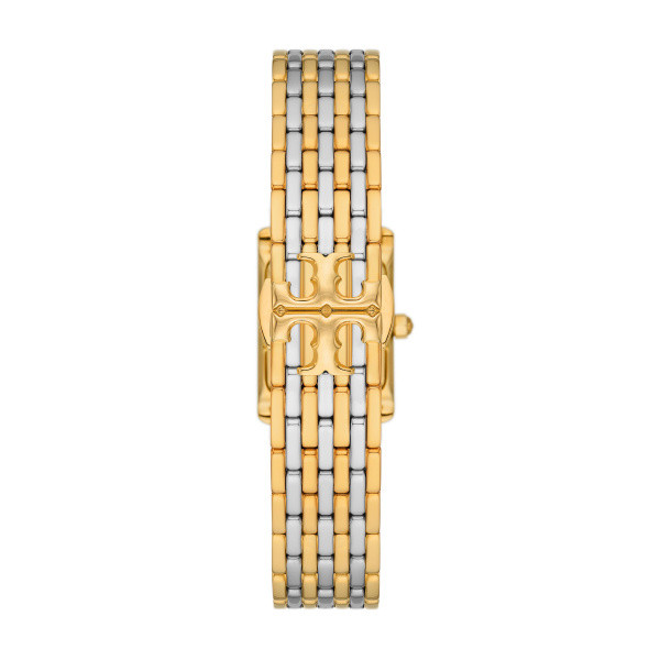 Elegante orologio da donna della linea The Eleanor, con cassa di forma rettangolare in acciaio dorato e bracciale a 7 file in acciaio bicolore con bella chiusura butterfly con logo TB a rilievo. Monta movimento 2 sfere a batteria su quadrante avorio con 4 indici e lancette dorate. Impermeabilità di 3 atmosfere, packaging dedicato