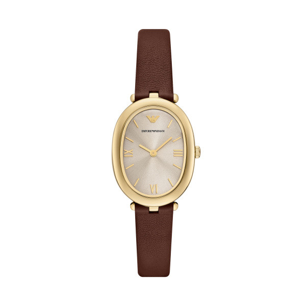 Elegantissimo orologio unisex con cassa ovale in acciaio rosato con cinturino di pelle liscia di color marrone scuro e chiusura ad ardiglione. Monta movimento a batteria due sfere su bel quadrante color tortora con indici, numeri romani e lancette rosate. Impermeabile fino a 3 bar, packaging dedicato