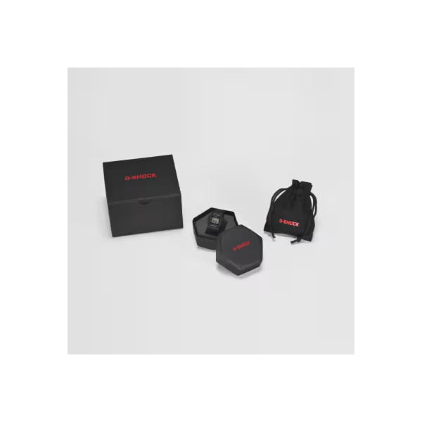 Originalissimo orologio G-shock, proprio come l'originale ma in scala ridotta per essere indossato come un anello! Micro cassa in resina rossa e cinturino in gomma rossa regolabile, monta movimento digitale a batteria con funzioni di luce, calendario, sveglia, cronometro e secondo fuso orario. Water resistant 20 bar