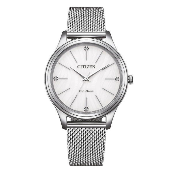 Orologio da donna della collezione OF lady con cassa in acciaio da 34 mm e bracciale in sottile maglia milano lucida. Monta movimento tre sfere eco drive a ricarica solare su bel quadrante bianco brillante con soli indici e impreziosito da quattro zirconi e lancette silver. Impermeabilità di 5 atmosfere.