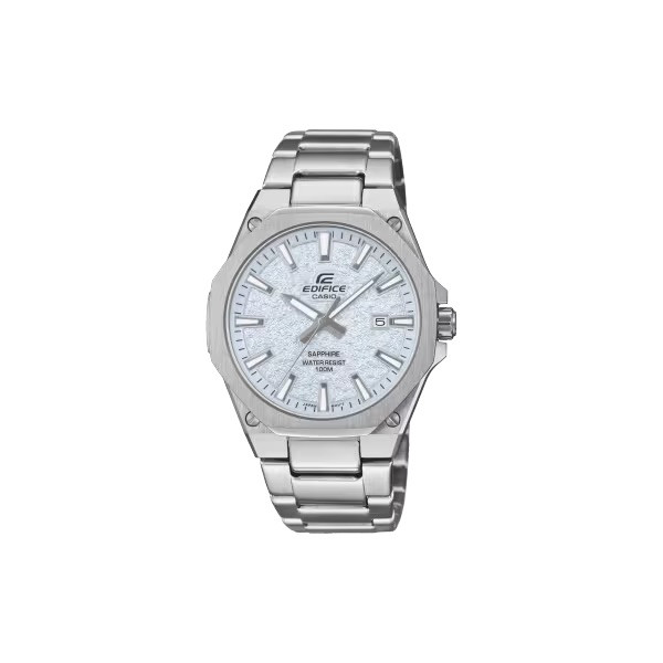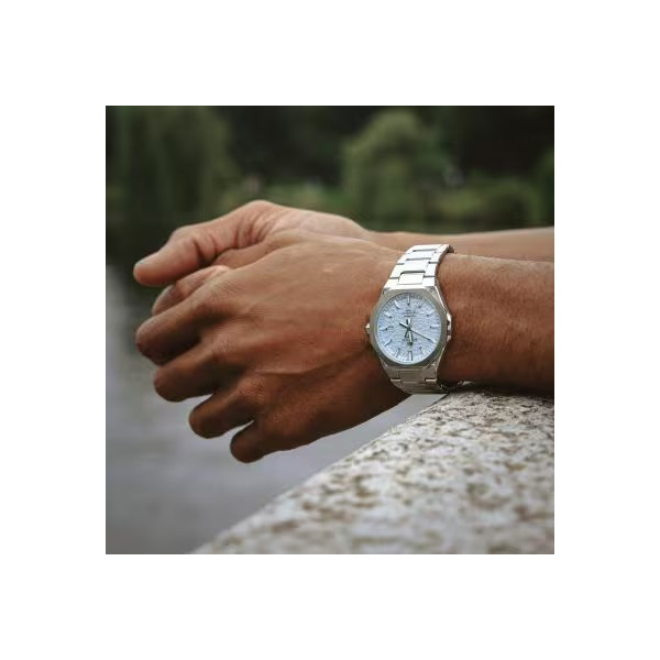 Orologio da uomo con sottile cassa in acciaio con lunetta ottagonale fissa, vetro zaffiro antigraffio e bracciale in acciaio lucido e satinato con chiusura di sicurezza. Monta movimento 3 sfere a batteria con datario su nuovo quadrante celeste effetto pietra con soli indici e lancette luminose. Impermeabilità di 100 metri.