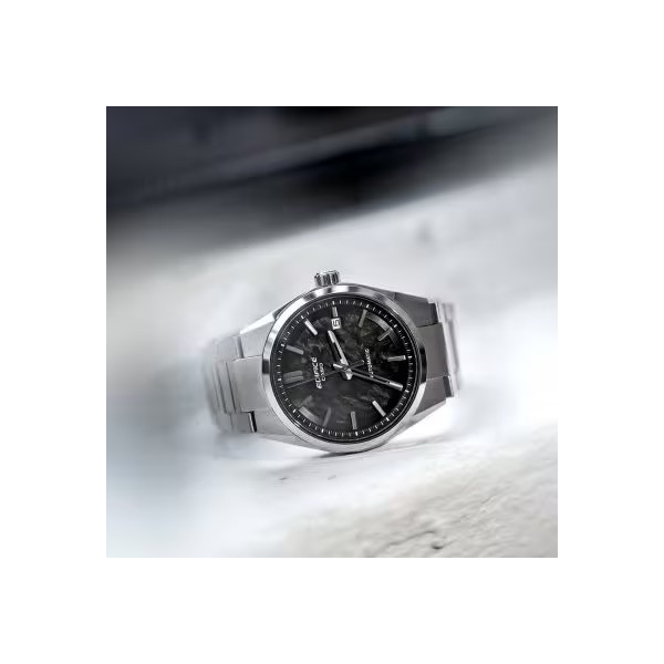 Ecco il primo orologio automatico di Casio! Cassa in acciaio da 38 mm finemente lavorata, vetro zaffiro antigraffio e splendido bracciale in acciaio a maglie piene con chiusura di sicurezza. Monta movimento automatico, ben visibile dal fondo a vista, con datario a ore 3 su bel quadrante nero effetto pietra con soli indici e lancette silver. Made in Japan, impermeabile fino a 10 bar