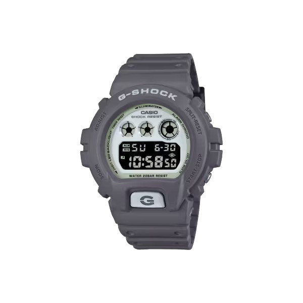 Orologio da uomo della collezione Hidden Glow su cassa 6900 da 50 mm con cinturino in resina di color grigio opaco. Monta movimento digitale a batteria con funzioni di crono, sveglia e timer e l'immancabile luce azionabile dal pulsante a ore 6 su display grigio con contorno bianco. Impermeabile fino a 200 metri.
